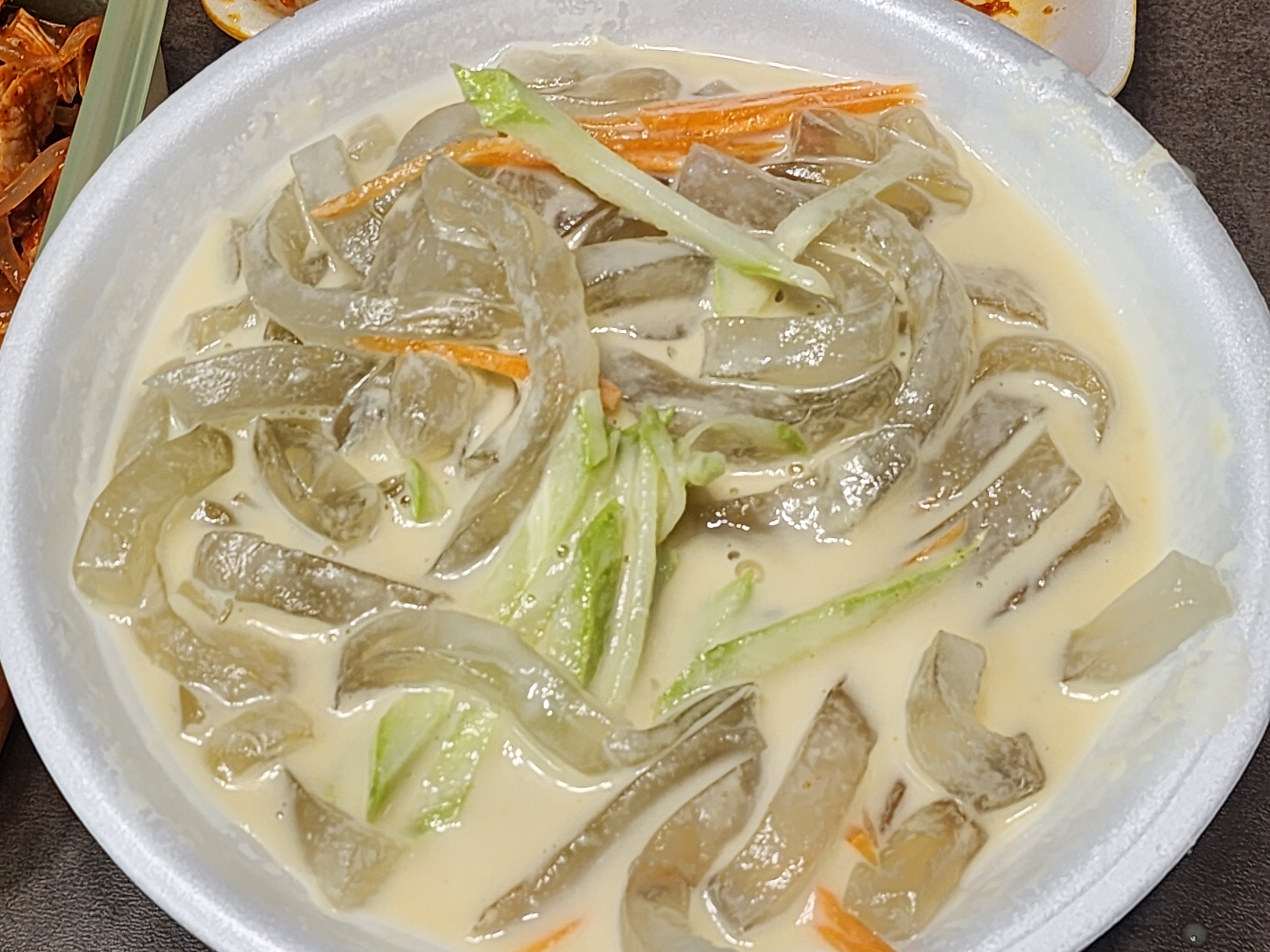 콩국과 우무가사리 사발을 사와서 양념대신 콩국을 보으면 우무가사리 콩국으로 맛볼 수 있습니다.