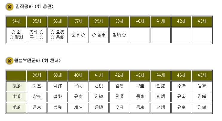 경주 최씨 항렬표 충렬공파, 관가정공파, 광정공파, 정랑공파, 사성공파, 화숙공파 돌림자 (0) | 2024.03.27 |