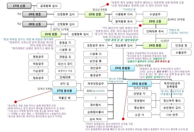 - 원종(1259~1274): 몽골과 강화. 원의 부마국화 시작.