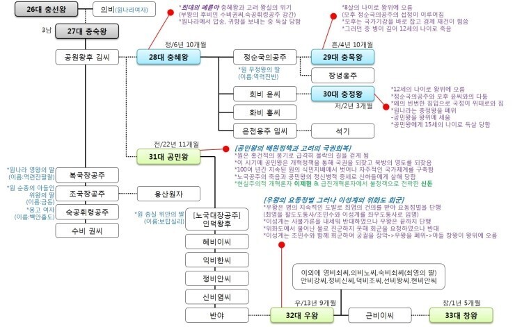 - 충정왕(1349~1351): 고려 말기의 혼란기.