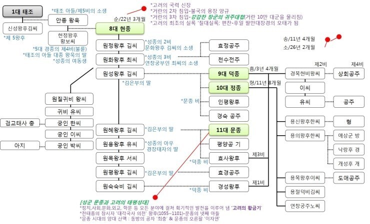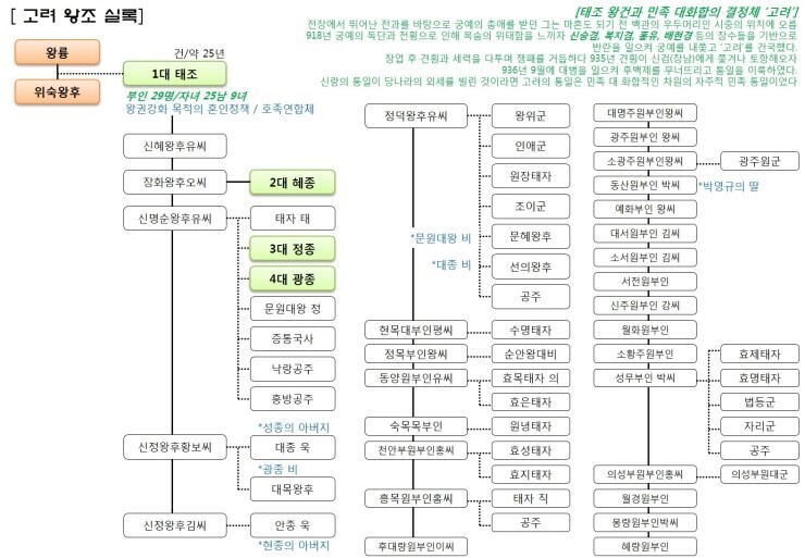 고려의 왕들은 대부분 태조 왕건의 직계 혹은 방계 혈통이지만, 무신정권과 원나라 간섭기에는 왕권이 흔들리며 정치적 혼란이 반복되었습니다. 아래는 고려 34대 국왕의 고려왕조 계보도 및 특징을 중심으로 정리한 내용입니다.