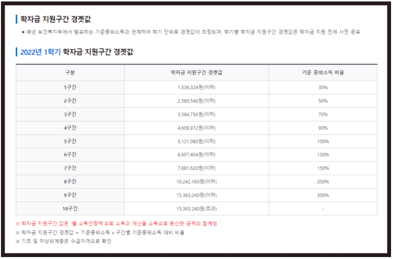 - 9구간은 전액이 아닌 학기당 100 만 원(연 200 만 원)으로 한정됩니다.
