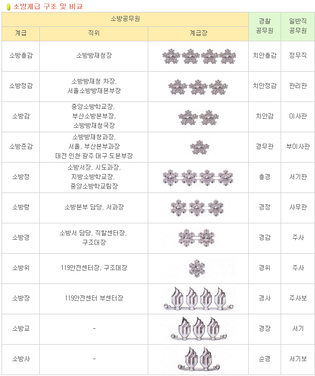 소방관 계급체계는 각 단계별 역할 분담을 통해, 화재 및 재난 상황에서 신속하고 효과적인 대응을 가능하게 하며, 국민의 생명과 재산을 보호하는 데 결정적인 기여를 하고 있습니다.