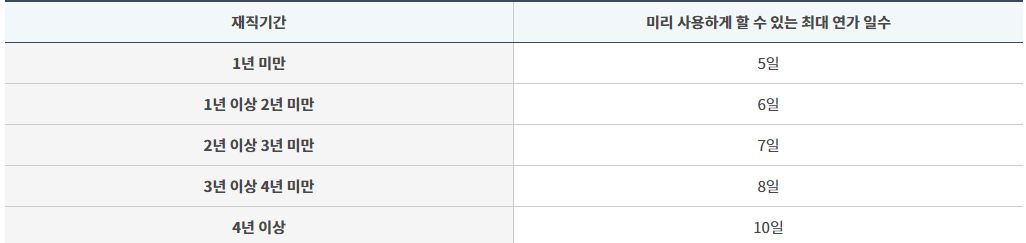 교원들은 일반 공무원과 동일한 연가 일수를 받으며, 재직 기간에 따른 교원 연가 일수는 아래와 같습니다: