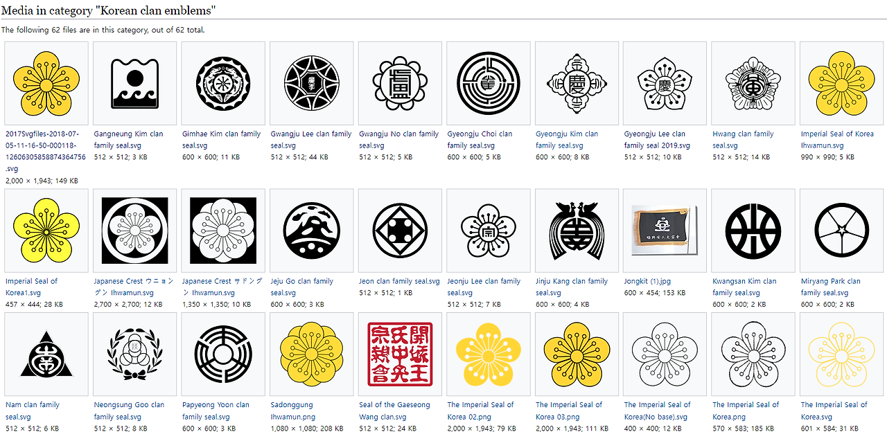 https://commons.wikimedia.org/wiki/Category:Korean_clan_emblems