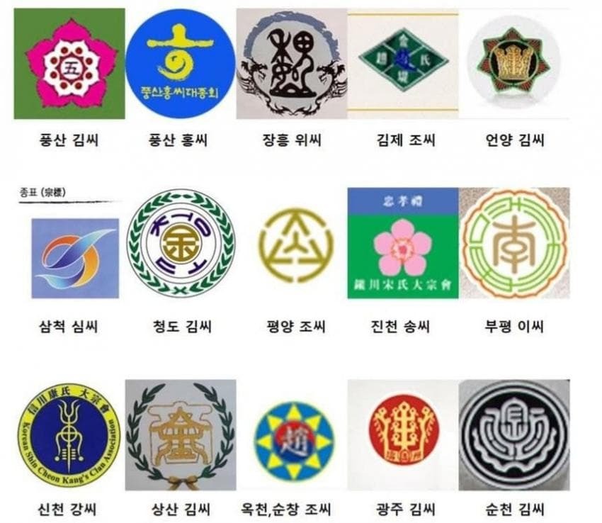 김녕김씨 평산신씨 순흥안씨 동래정씨 달성서씨 안동김씨 해주오씨 전주최씨 남평문씨 남양홍씨 창녕조씨 제주고씨 수원백씨 한양조씨 경주정씨 문화류씨 엠블럼 로고 종문