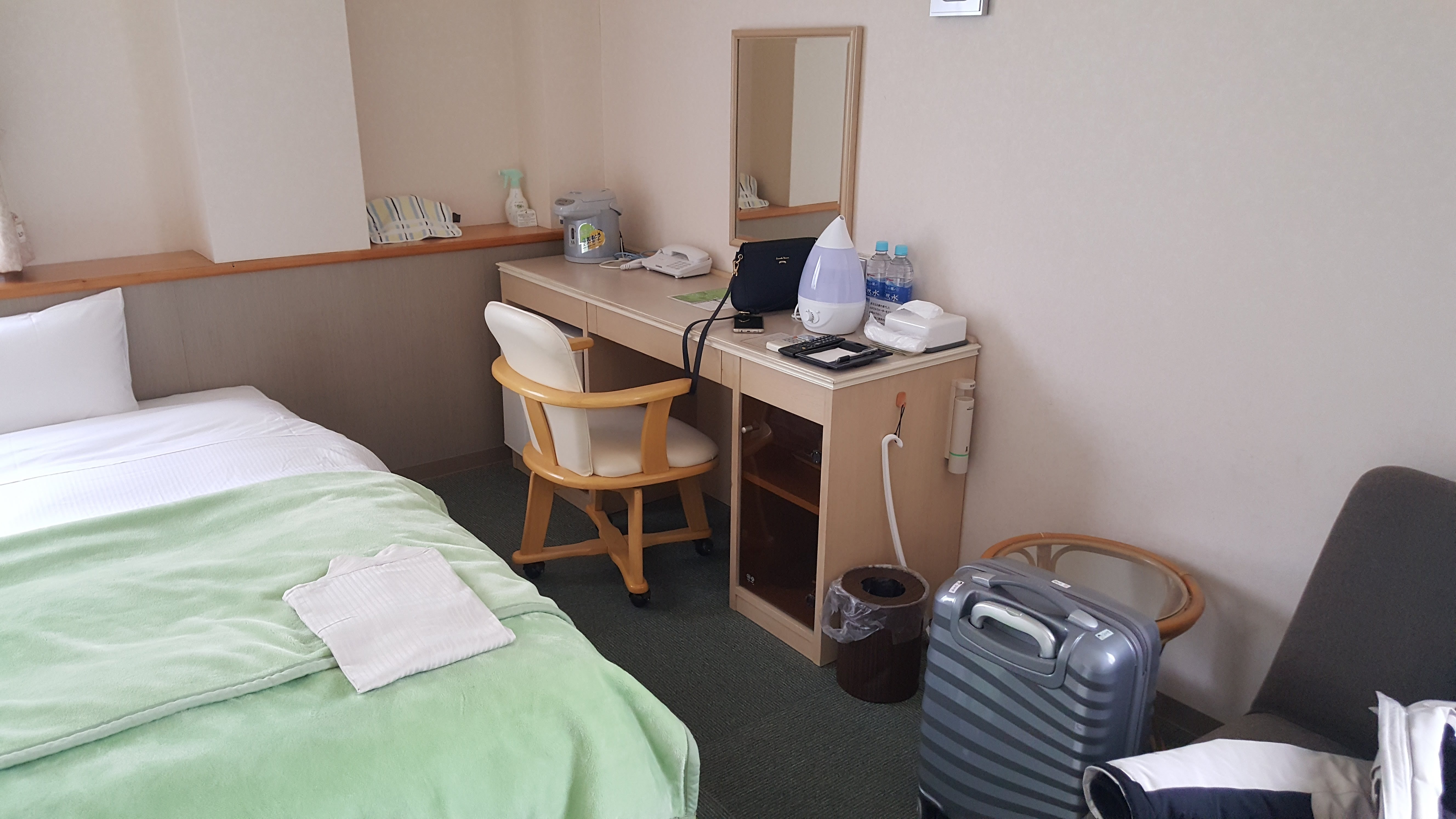 저녁에는 호텔로 이동했습니다. 패키지 숙소는 깔끔한 비즈니스 호텔급으로, 일본 특유의 좁지만 정갈한 객실이었습니다. 일본식 온천탕(대욕장)을 무료로 이용할 수 있었는데, 장시간 이동으로 피로한 몸을 풀기에 충분했습니다.