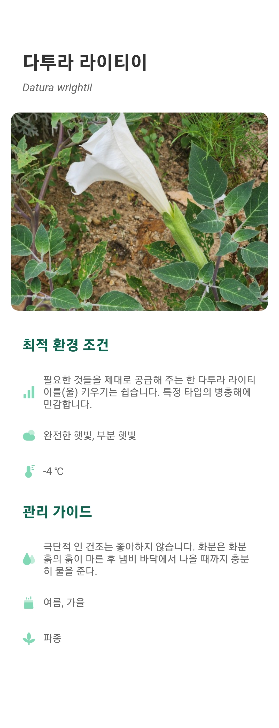다투라 라이티이는 그 아름다운 꽃과 독특한 성장 과정으로 많은 이들을 놀라게 하고 있습니다. 그러나 이 식물은 독성을 지니고 있어 신중한 관리가 필요합니다. 그 독특한 특징과 문화적 의미를 함께 고려하여 이해하는 것은 이 식물의 본질을 더 깊이 이해하는 한 걸음이 될 것입니다.