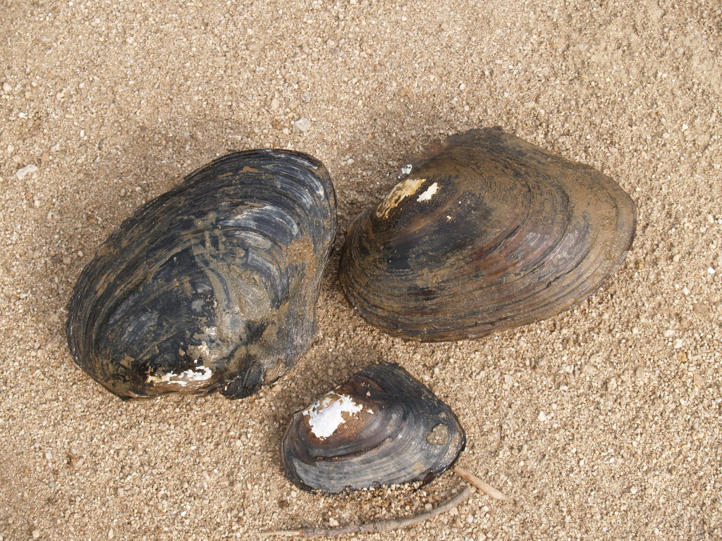 - 말조개: 성체 패각 길이 25-30 cm, 각고 13 cm 안팎. 타원형에 가까우며 껍질 색은 흑갈색, 내부는 청백색 진주층으로 빛이 난다. 패각 후면에 뚜렷한 ‘귀’ 돌출부가 없고 등 쪽 회두부가 완만한 곡선을 그린다.
