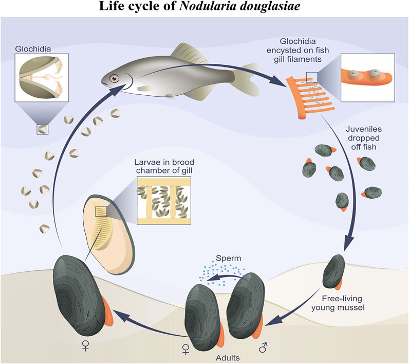 두 종 모두 다른 담수 이매패류와 마찬가지로 치패(glochidia) 단계에서 담수어류 아가미나 지느러미에 기생해 일정 기간을 보낸 뒤 바닥으로 낙하해 성체로 자랍니다. 국내 연구에 따르면 한여름 수온 22-26 ℃에서 산란이 활발하며, 은어·동자개·붕어류가 주요 숙주로 보고되었습니다. 성체는 여울보다는 유속이 완만한 뻘-모래 혼합층에 반쯤 몸을 묻은 뒤 여과섭식을 통해 조류·박테리아·유기입자를 걸러 먹습니다.