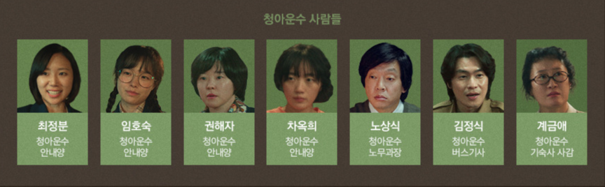 - 고영례(김다미 분): 가난한 집안의 장녀로, 가족의 생계를 책임지며 청아운수에서 버스 안내양으로 일합니다. 그러나 그녀의 진짜 꿈은 대학 진학과 자기계발. 사회적 제약과 가난이라는 한계에도 불구하고 꿋꿋이 미래를 향해 나아갑니다.