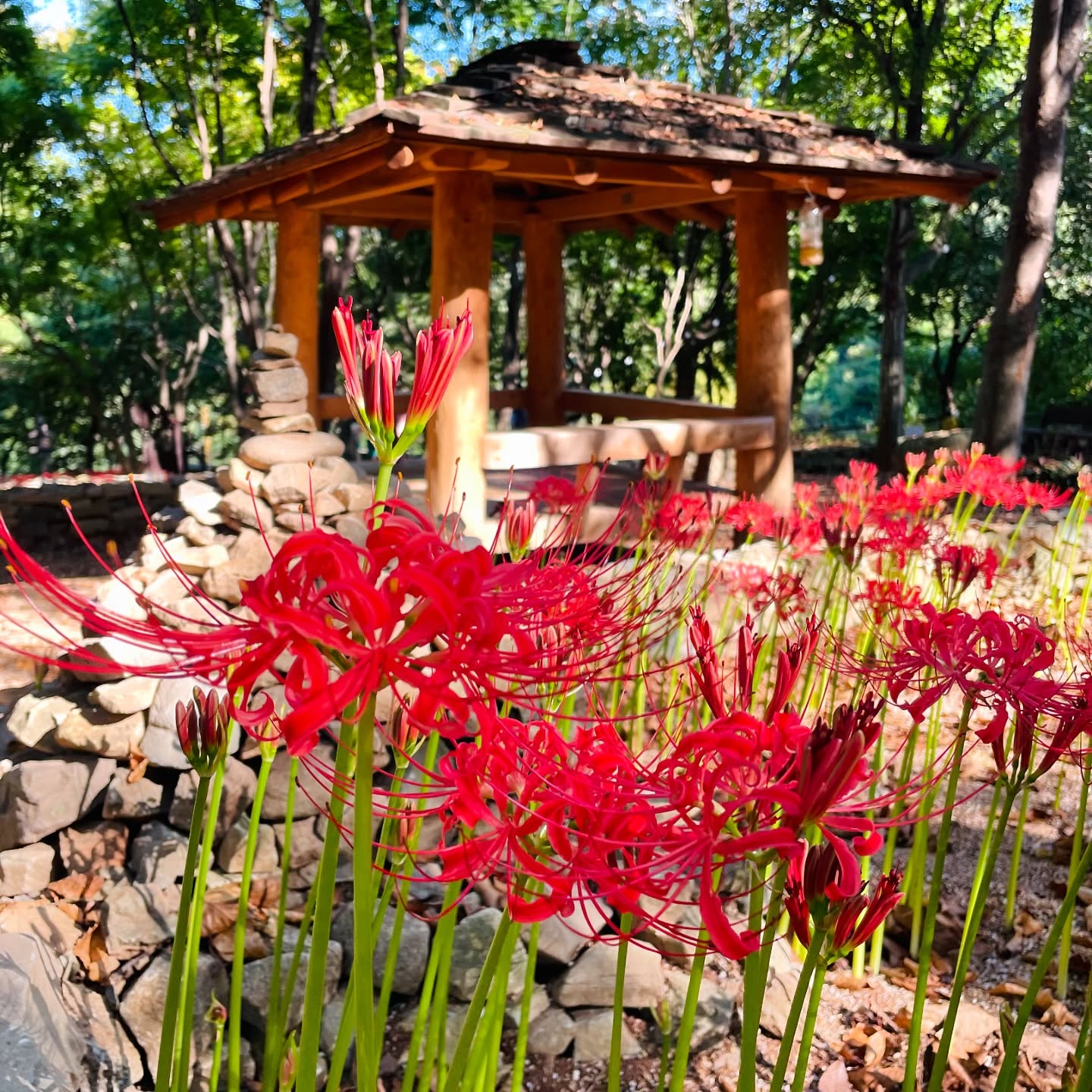- 특징: 가을 산사의 정취 속, 자연스러운 꽃무릇 군락 감상