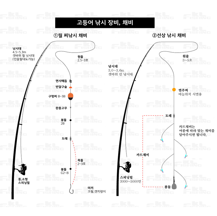 고등어 낚시를 위해서는 다음과 같은 기본 채비가 필요합니다: