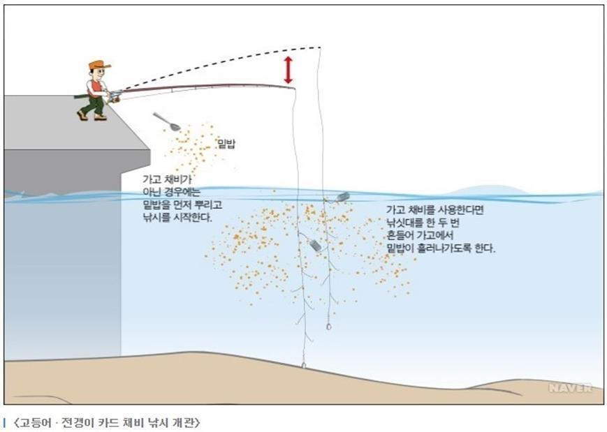 - 학꽁치·삼치 혼군: 물색이 맑은 날 은빛 어군이 따라붙으므로 카드채비를 반 절단(5-6단)으로 축소하면 꼬임 최소화