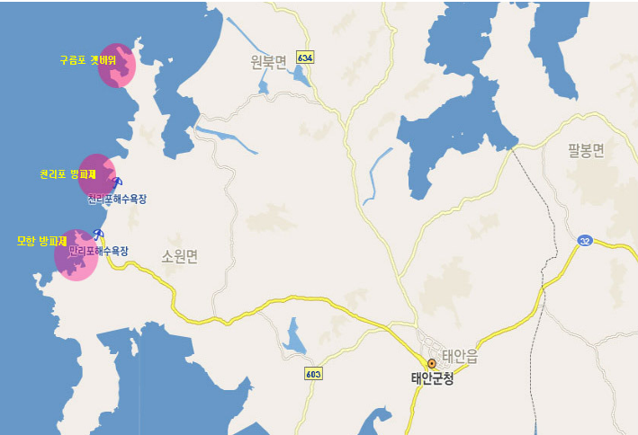 - 포인트 특징: 긴 곡선형 테트라포드가 남서풍을 막아주어 잔잔한 횡조류가 형성