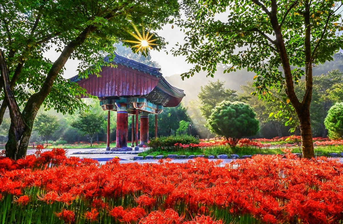 - 노을빛 풍경: 해 질 무렵, 붉은 꽃무릇 위로 황금빛 햇살이 드리우면 환상적인 장면이 연출됩니다.