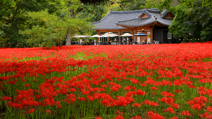 가장 아름다운 시기는 역시 9월 하순의 일주일간으로, 이 시기에 방문하면 붉게 타오르는 꽃무릇의 장관을 만날 수 있습니다. 다만 주말에는 인파가 몰리므로 가능하다면 평일 오전에 찾는 것이 좋습니다.