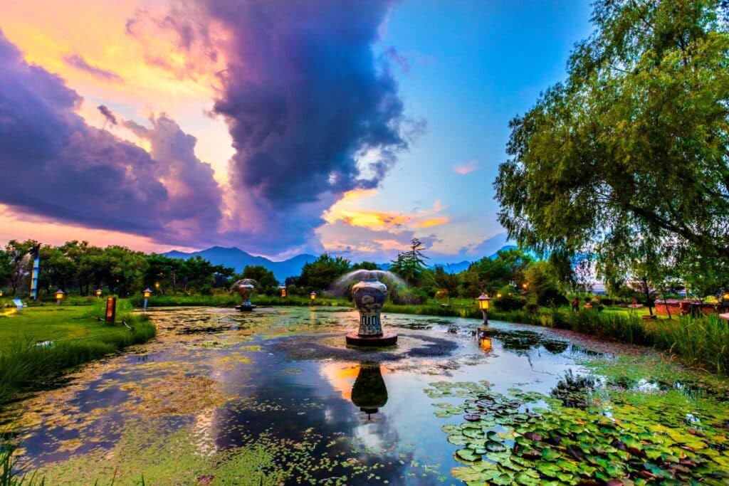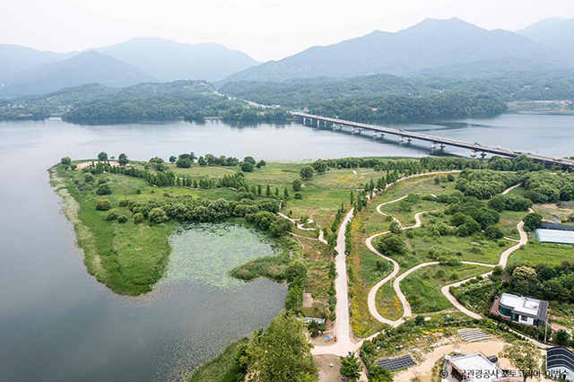 - 주요 콘셉트: 전통 조경 양식을 현대적으로 해석한 수변정원. 팔작지붕 정자·누각, 전통 창호를 활용한 전시관과 연못, 실개천이 이어져 한국적인 풍경을 강조.