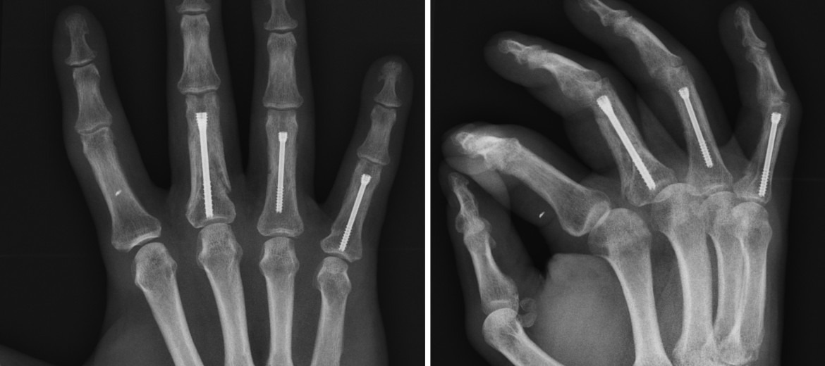 - PIP 관절 굴곡 100 °, 신전 결손 5 ° 이하.