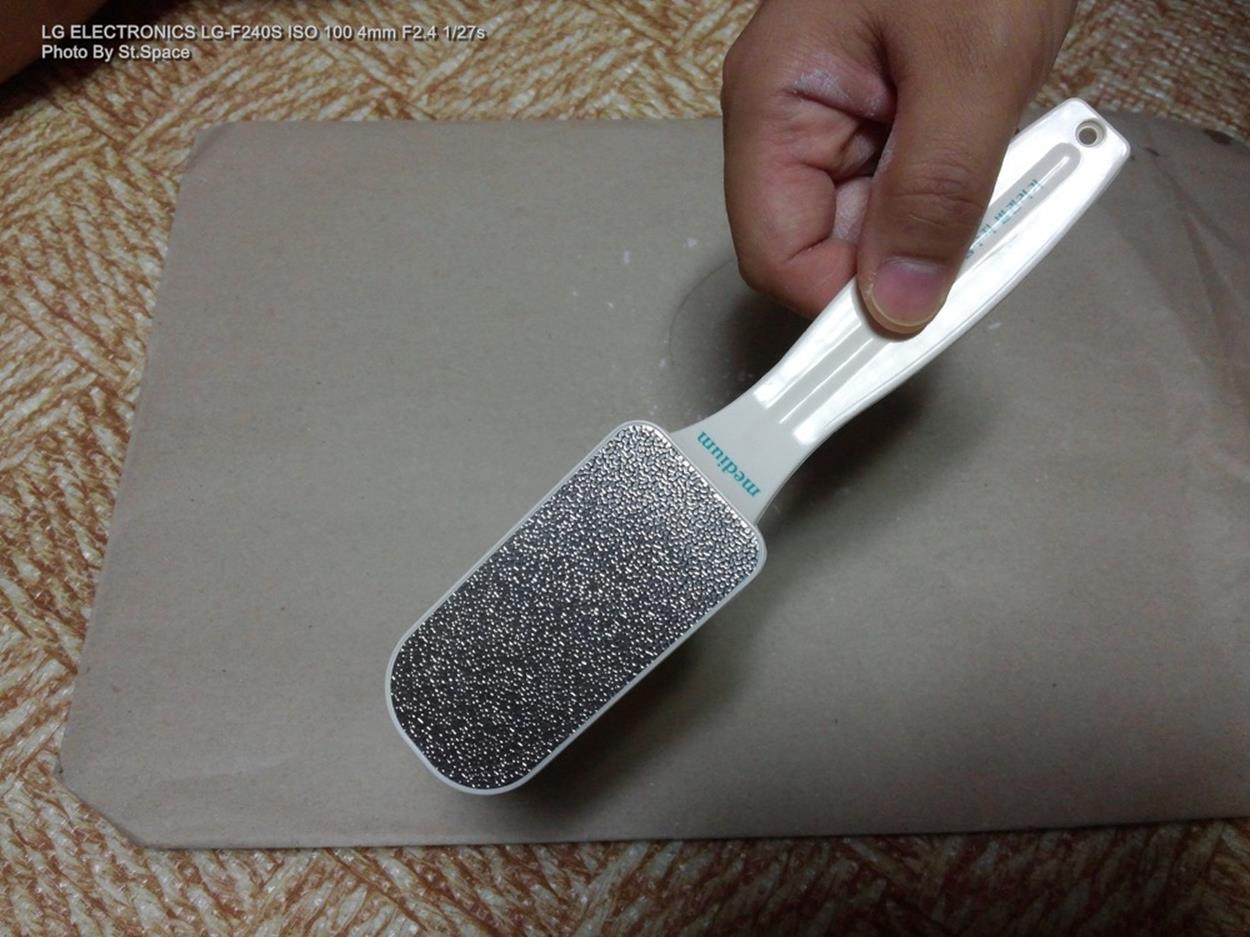 순간접착제가 손에 묻었을 때 당황하지 마시고, 손을 물에 불린 다음에 아래와 같은 각질제거기로 순간접착제가 붙은 부분을 문질러 주세요. 각질제거기는 피부 손상은 최소화하고 각질만 제거하지만, 손에서 굳어버린 순간접착제의 제거에도 탁월한 성능을 발휘합니다. 하지만 아무리 정상 피부의 손상을 최소화한다 해도, 맨 살에 저걸 문지르면 피부에 자극이 심하겠죠? 그러니 반드시 물에 불려주세요. 제 아내는 그냥 마구 문질러 댔답니다. 그래도 금방 요렇게 깔끔해졌어요. 다행히 피 보지 않고 잘 해결되었네요.