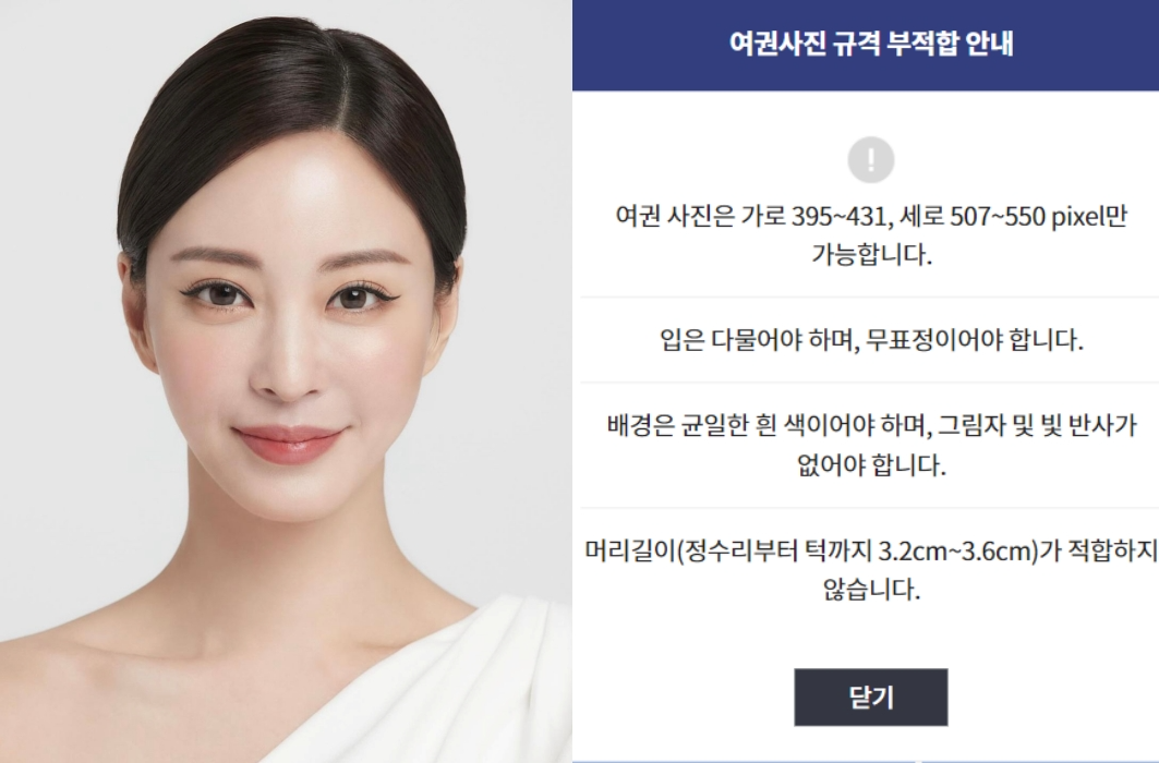 규정을 만족하지 못할 경우 신청이 반려되므로, 전문가가 운영하는 사진관에서 촬영하는 것이 안전합니다.