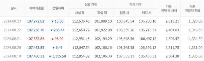 - 국내 금값: 107,310원 (등락률 -0.102%)