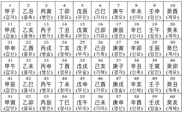 육십갑자표(60갑자표)