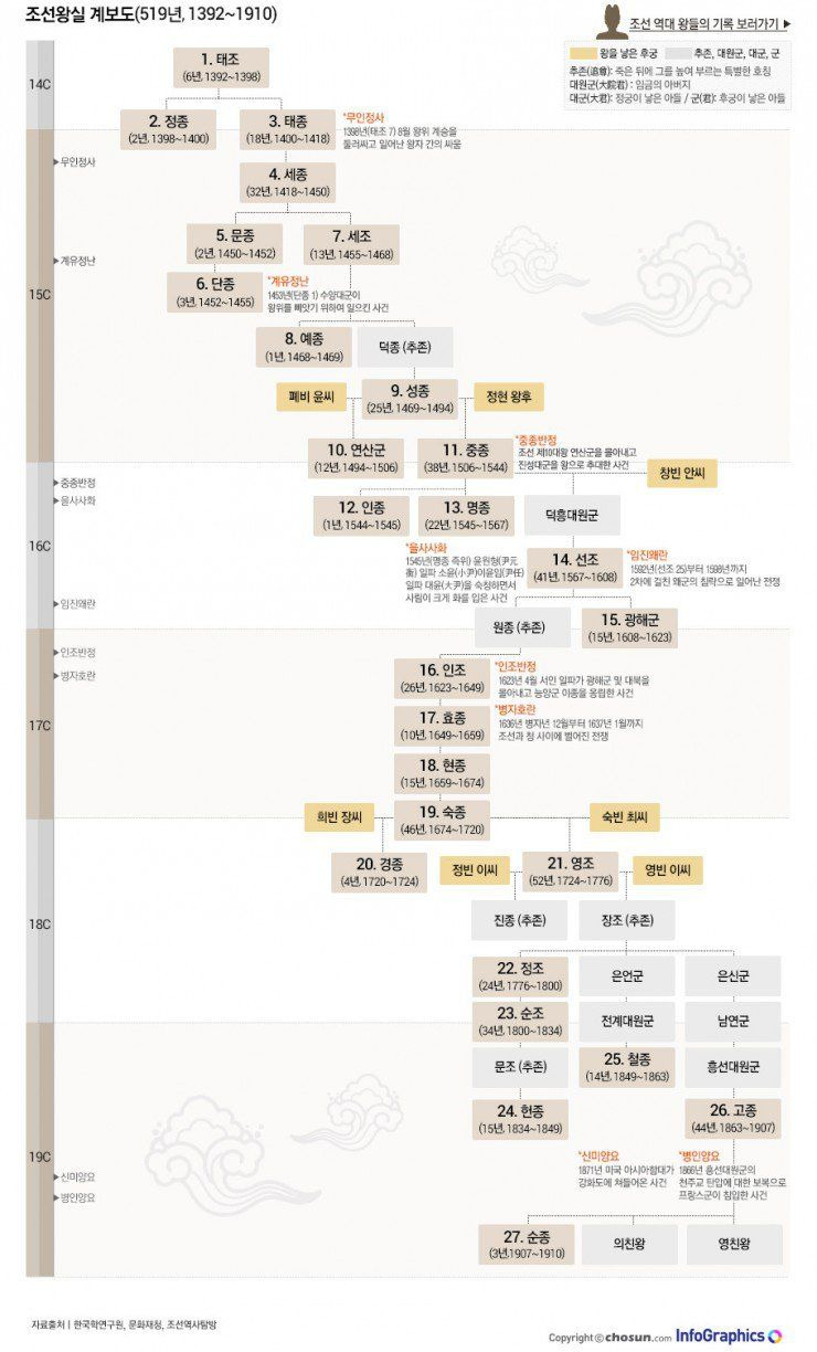 조선왕조 계보와 조선 왕의 순서도 가계도 역대 왕들에 대한 이야기