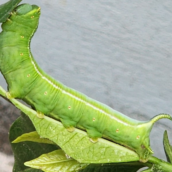 꼬리 박각시나방은 북미 지역에서 널리 발견되는 종으로, 그 독특한 외모로 쉽게 구별할 수 있습니다. 이 박각시나방의 애벌레는 몸의 끝 부분에 긴 가시 같은 구조물이 있어, 천적들로부터 자신을 방어하는 역할을 합니다. 꼬리 박각시나방의 성충은 검은색과 흰색이 어우러진 날개를 가지며, 주로 밤에 활동합니다. 이 나방은 다양한 식물을 먹지만, 특히 토마토와 담배 등의 식물에서 많이 발견됩니다. 애벌레는 크고 강력하여, 식물의 잎을 빠르게 소모하며, 이는 농작물에 피해를 줄 수 있어 농업적으로도 중요한 연구 대상이 되고 있습니다.