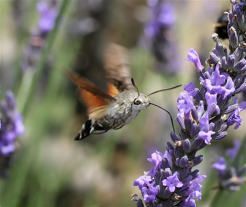 박각시나방은 빠르고 강력한 비행 능력으로 유명합니다. 이들은 긴 날개를 사용해 높은 속도로 비행할 수 있으며, 필요시 급격한 방향 전환이나 제자리 비행도 가능합니다. 이러한 비행 능력은 꽃에서 꿀을 섭취할 때 유용하며, 포식자로부터 도망칠 때도 큰 도움이 됩니다. 또한, 긴 비행 거리는 박각시나방이 넓은 지역에 걸쳐 서식지를 확장할 수 있게 해주어, 다양한 환경에서 살아남을 수 있게 합니다.