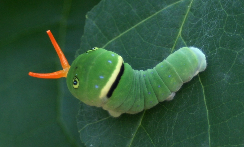 포켓몬고의 캐터피를 닮은 녹색박각시나방 애벌레 사실은 오른쪽의 애벌레는 호랑나비 애벌레입니다. 어차피 애벌레는 caterpillar 이고 캐터피라는 이름은 이 caterpillar에서 유래했슴돠.