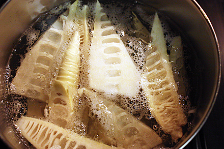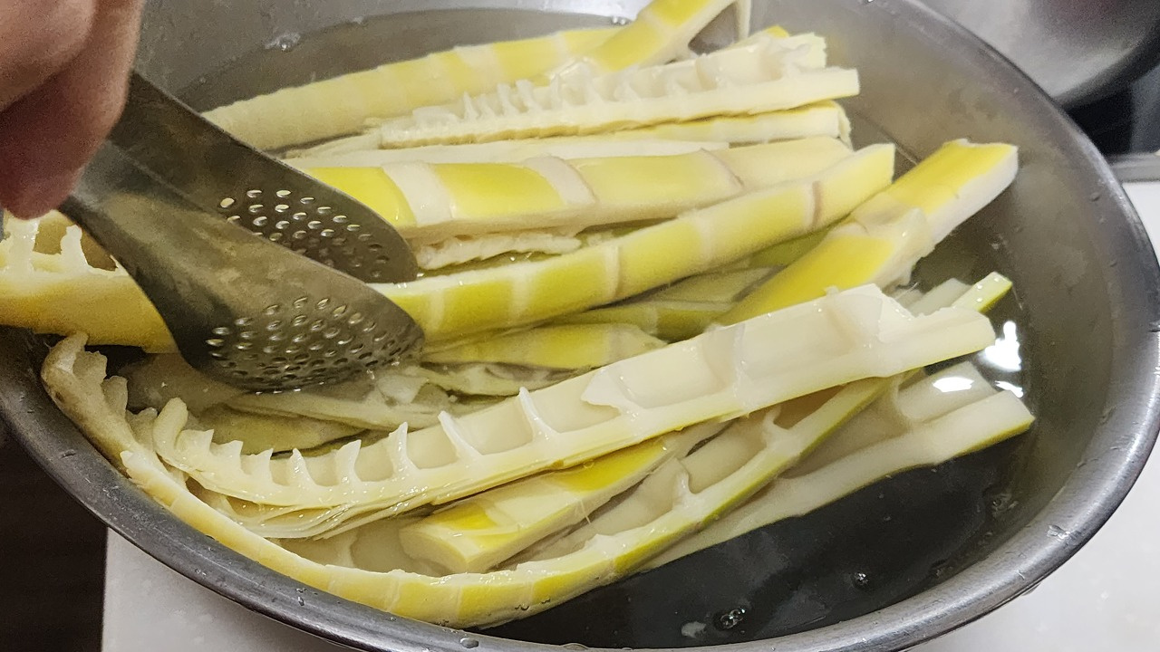 - 물에 쌀겨를 풀고 죽순을 넣습니다.