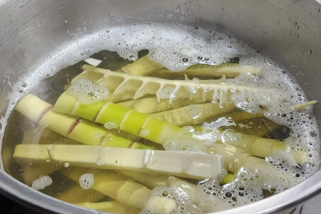 - 물에 쌀겨를 풀고 죽순을 넣습니다.