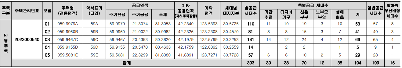 각 타입별로 세대수와 분양가, 그리고 최고층수가 다르므로, 자신의 필요와 예산에 맞는 타입을 선택할 수 있습니다.