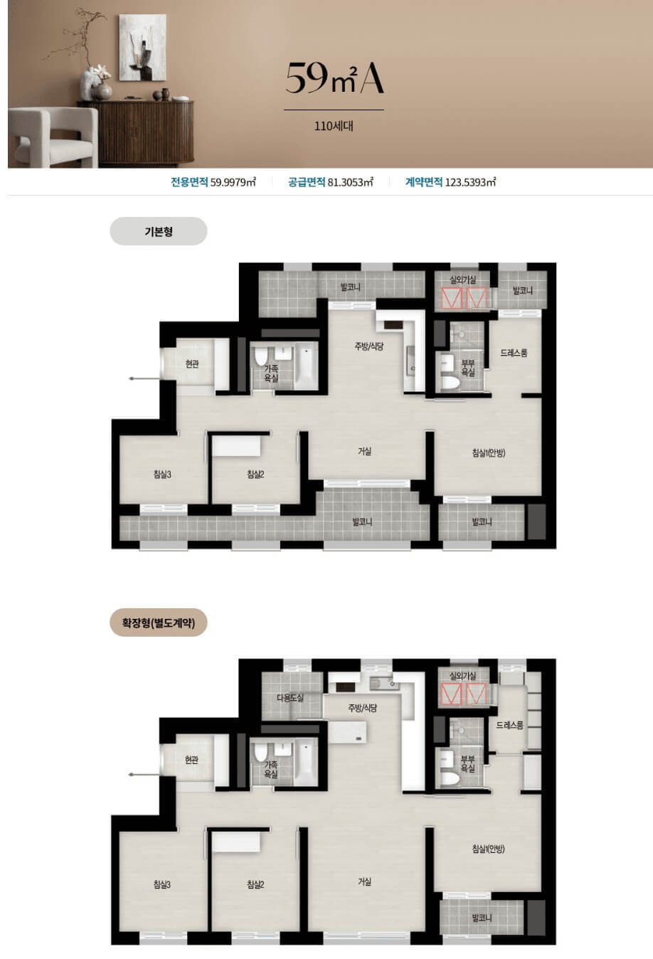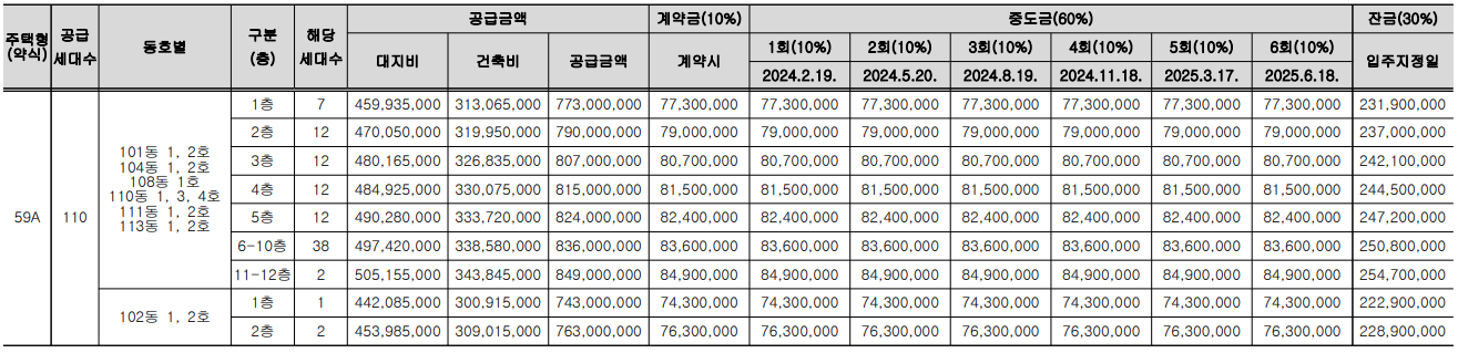 - 59A타입(110세대): 8.49억원 / 최고 12층