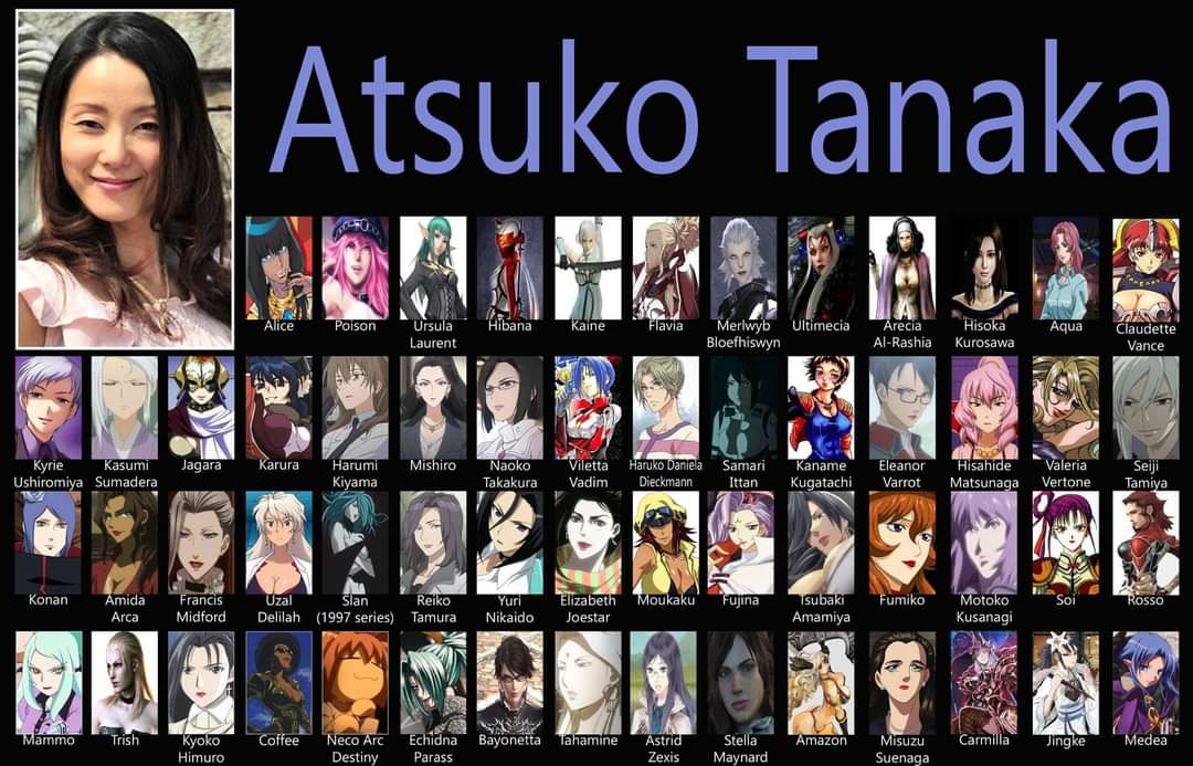 - 공각기동대 시리즈 - 쿠사나기 모토코: 타나카 아츠코의 대표적인 배역 중 하나로, 강인한 여성 캐릭터인 쿠사나기 소좌를 연기하며 많은 팬들에게 사랑받았습니다. 이 역할은 그녀의 목소리 연기력을 전 세계에 알리는 계기가 되었습니다.