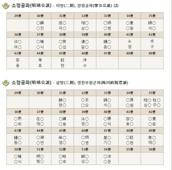 소정공파의 역사와 돌림자