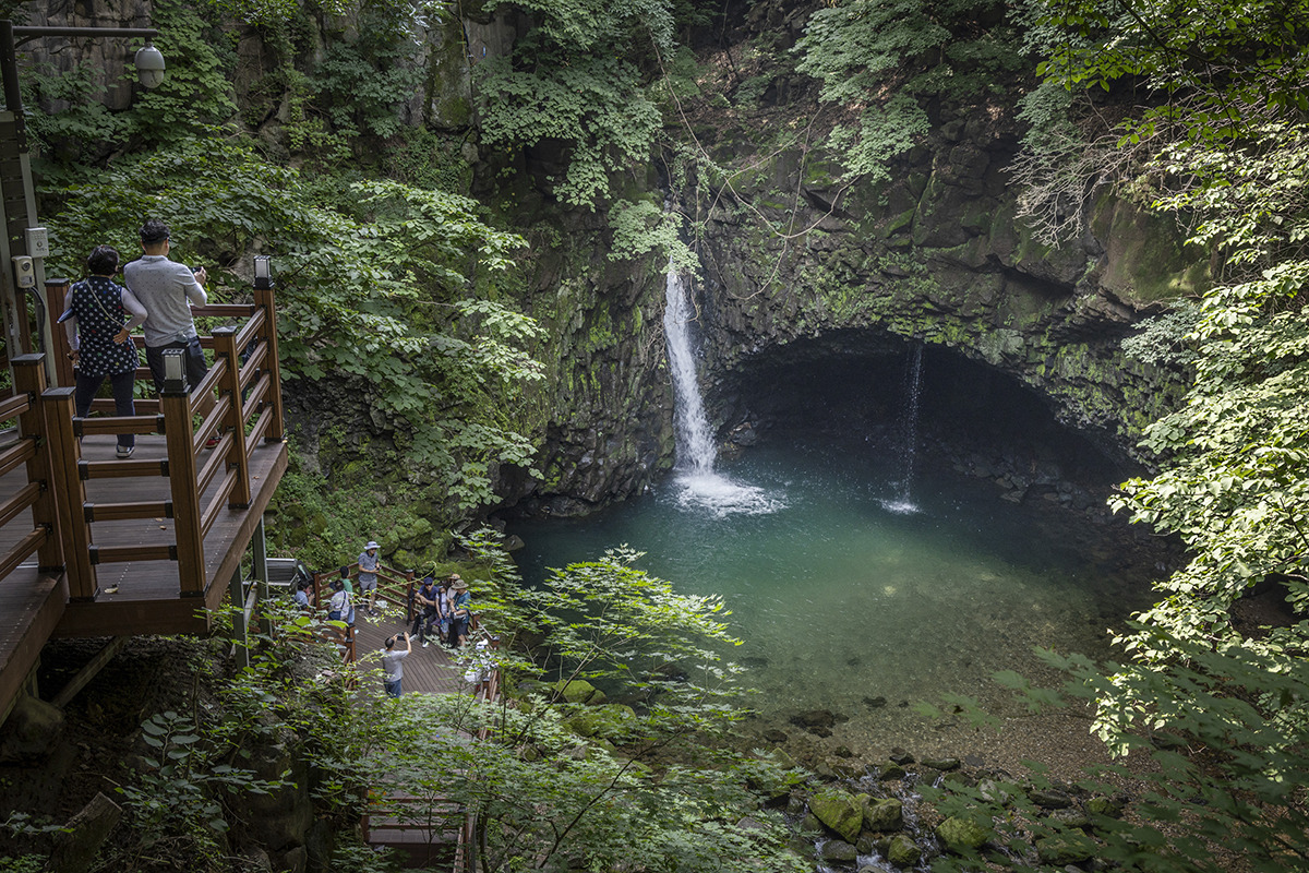 10 m 높이 현무암 주상절리 절벽 사이로 시원하게 떨어지는 물줄기가 ‘야생 그 자체’의 정취를 줍니다. 한탄강 용암대지가 만든 자연 동굴 세트를 배경으로 드라마·예능 촬영지로도 유명하죠.