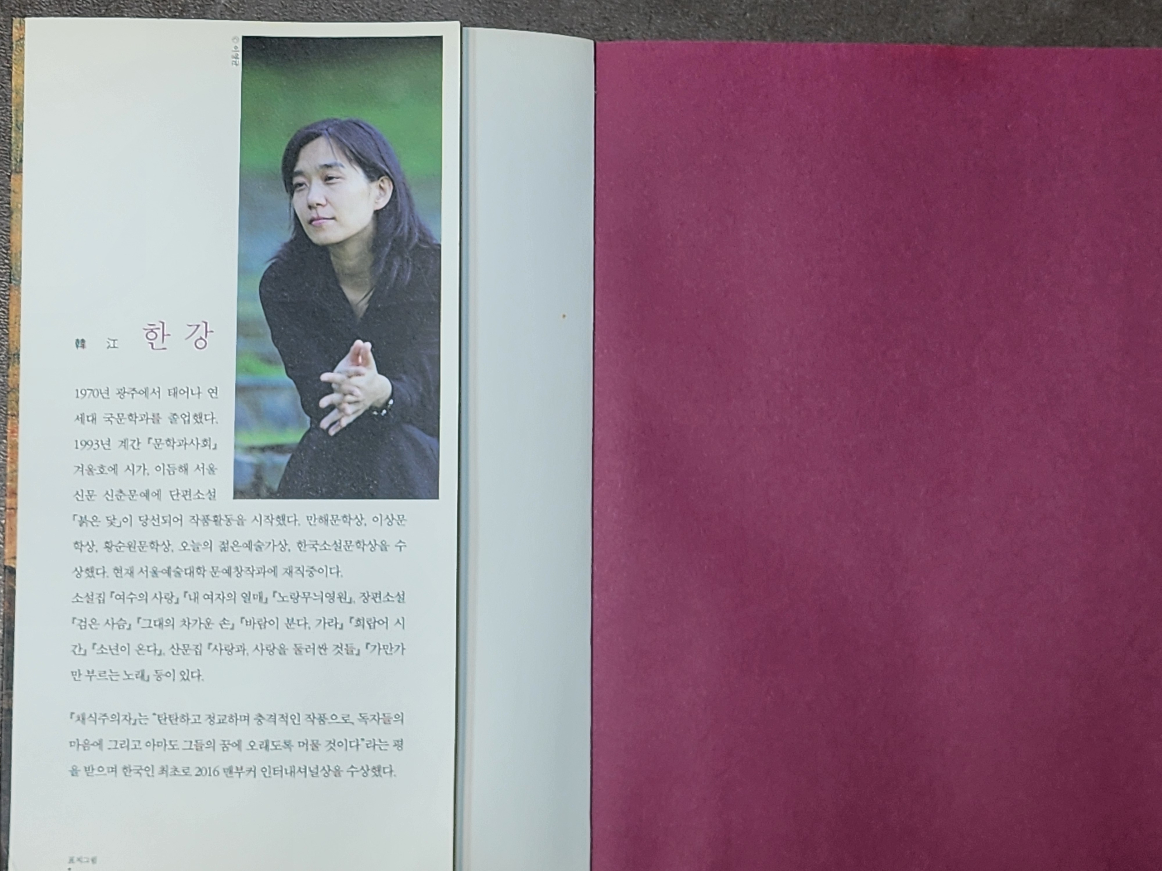 노벨문학상 수상자 한강 작품 채식주의자, 프로필 나이