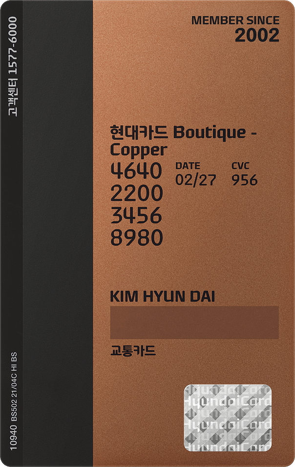 - 대부분의 현대카드는 서명란 우측에 CVC가 양각 또는 음각 인쇄되어 있습니다.