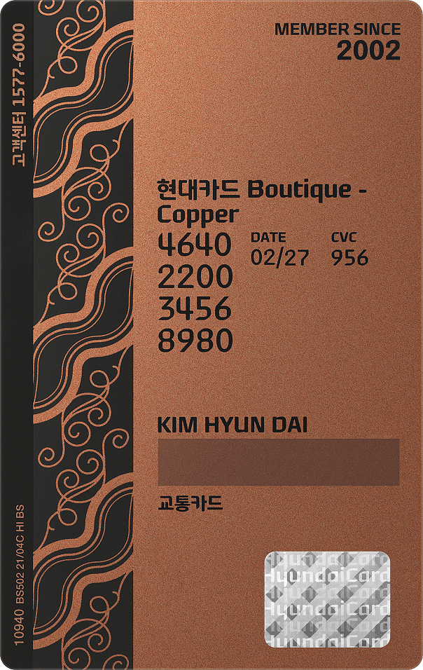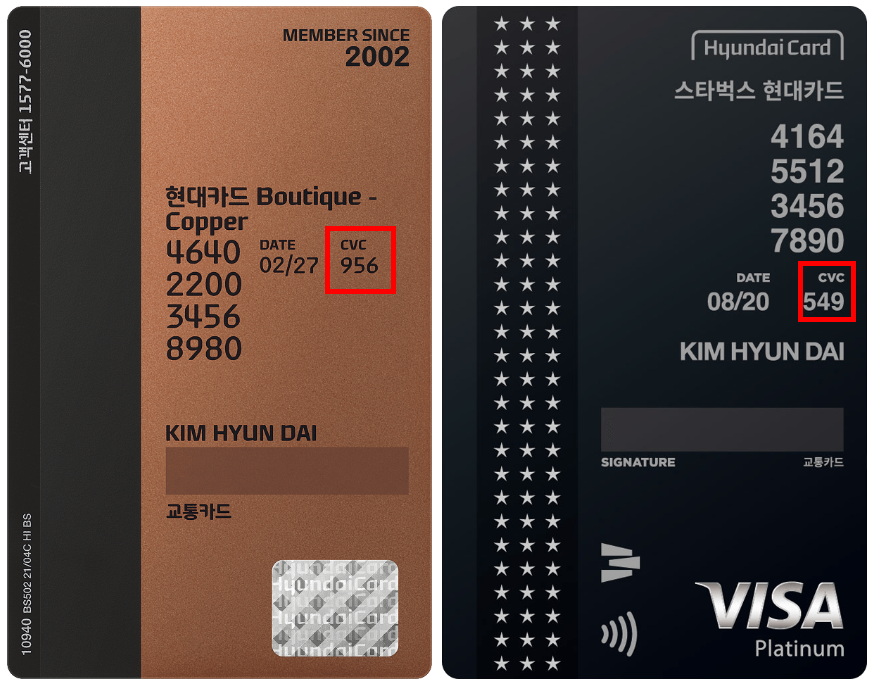- 대부분의 현대카드는 서명란 우측에 CVC가 양각 또는 음각 인쇄되어 있습니다.