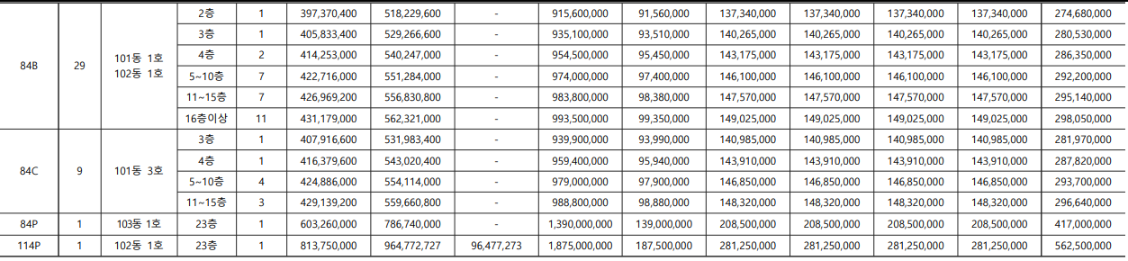 - 84P㎡: 총 2세대 중 1세대, 분양가는 13.90억 원