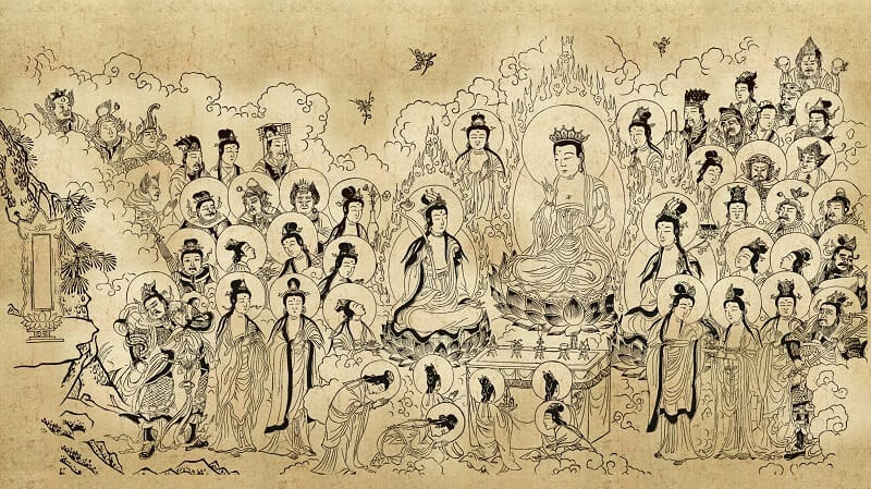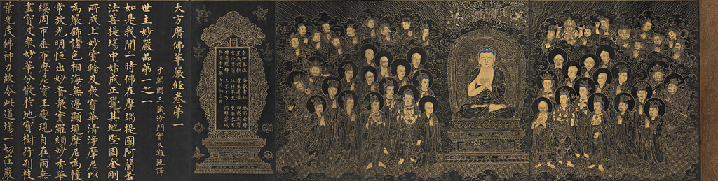 - 보현·문수를 필두로 성문·연각·비구·비구니·우바새·우바이, 그리고 선재동자와 53선지식 군.