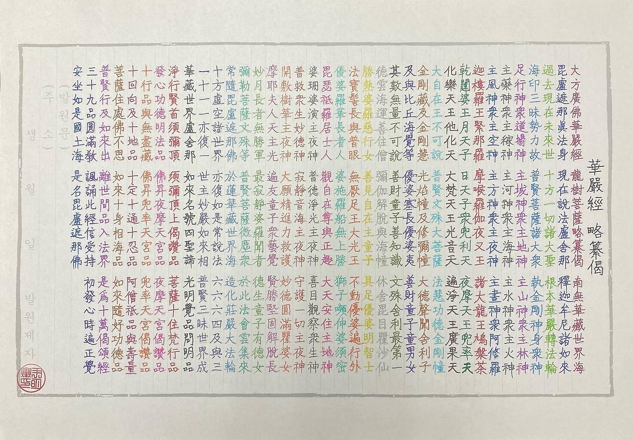 불교 경전 중에서도 화엄경(大方廣佛華嚴經)은 스케일이 남다른 거대한 서사와 사상적 깊이로 유명합니다. 하지만 60권·80권으로 전승된 방대한 분량 때문에, 초심자는 물론 수행자에게도 한 번에 전체를 꿰뚫어 이해하기가 쉽지 않습니다. 이때 전례(예불)와 수행 현장에서 핵심을 압축해 독송하도록 만들어진 텍스트가 바로 화엄경 약찬게(華嚴經 略纂偈)입니다. 전통적으로 ‘대방광불화엄경 용수보살약찬게’라 부르며, 말 그대로 화엄의 요지를 간결한 게송으로 엮었습니다.