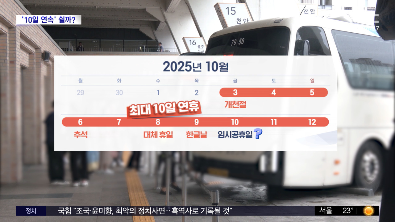 추석 황금연휴, 10월 10일 임시공휴일 하루가 열흘을 만든다
