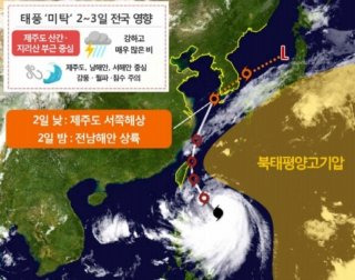 - 태풍 미탁의 간접 영향으로 남해와 서해 일부 해역에는 풍랑주의보가 발효될 가능성이 있습니다.