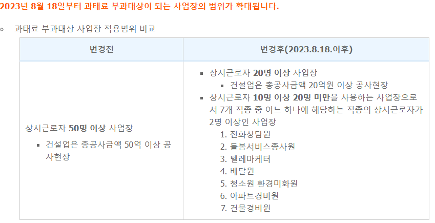 2023년 8월 18일부터 상시근로자 50인 미만의 사업장도 휴게시설을 설치해야 한다는 변화가 있었습니다. 이는 과거 사건을 계기로 휴게시설의 중요성이 대두되어 법적 제도로 반영된 결과입니다. 휴게시설 설치를 의무화하고, 이를 위반할 경우 과태료를 부과한다는 점은 노동환경의 개선을 위한 중요한 발걸음이라 할 수 있습니다. 물론, 사업장의 규모에 따른 과태료 부과 대상이 확대되었기 때문에 사업주들도 이에 유의하여야 합니다.