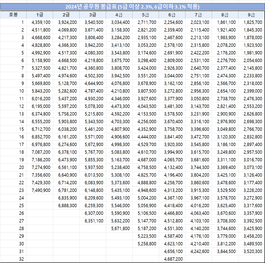 2024 공무원 봉급 인상 인상률 2024년 공무원 봉급표 예측하기