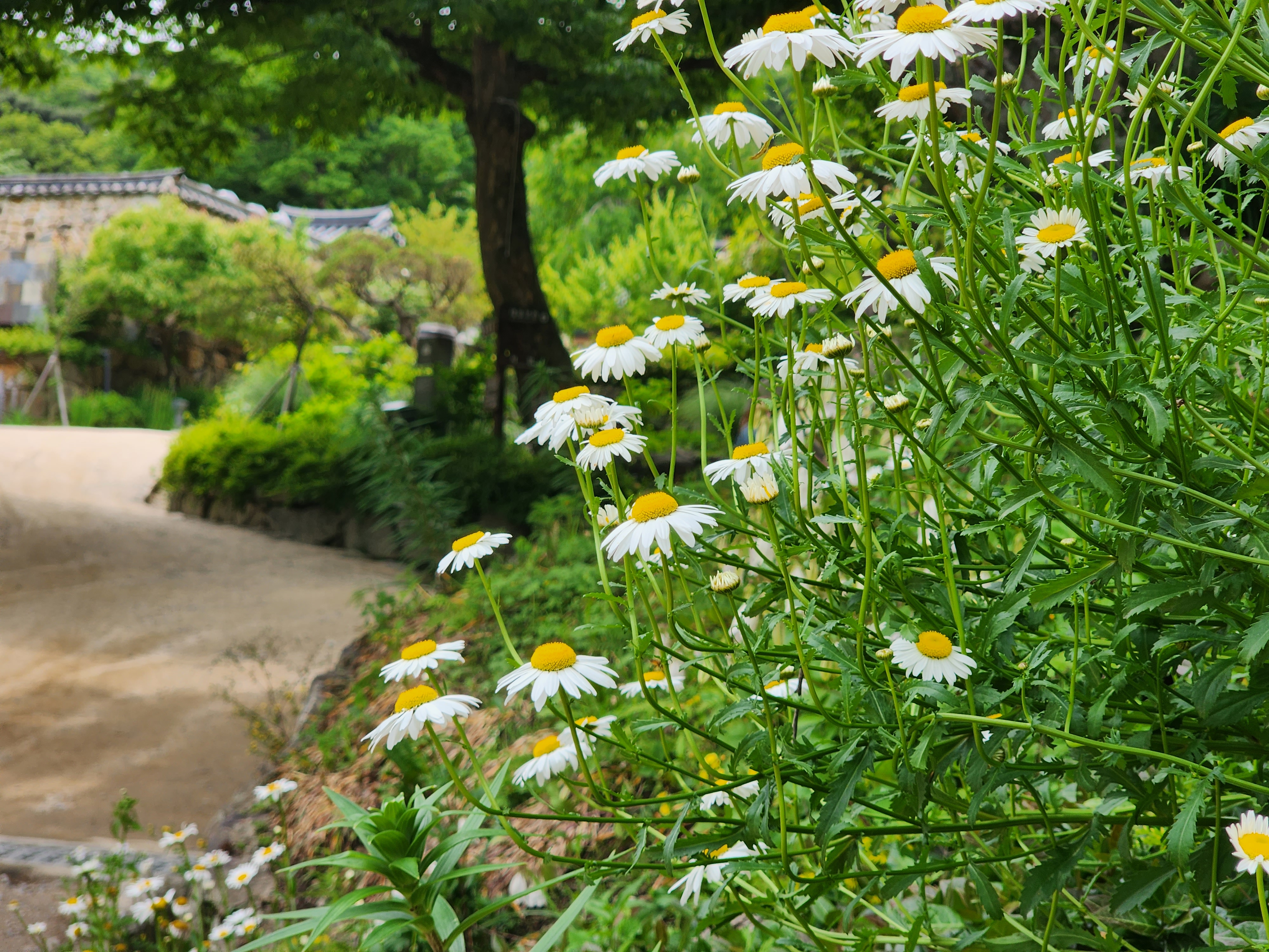 - 옥스아이데이지: 긴 주걱모양의 잎, 뚜렷한 톱니와 털이 있음. 3월 부터 개화.